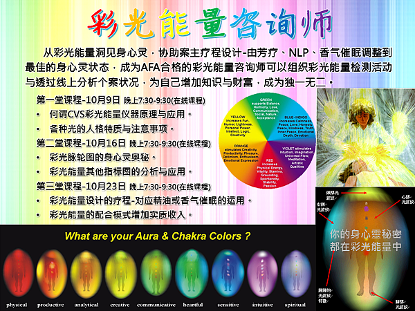 彩光能量分析師課程學費:2500元台幣(取得NAHA與彩光能量分析師認證可以受聘為AFA的分析師,增加額外的知識與收入)