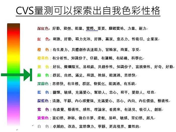 CVS(Chakra Vedio Station)是透過生物回饋醫學、色彩心理學、能量醫學讓我們可以迅速瞭解到我們的脈輪狀態、自我色彩性格以及氣場能量狀態,並且透過專業的諮詢師給予建議,讓我們找到平衡自我脈輪的建議。