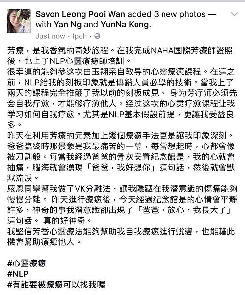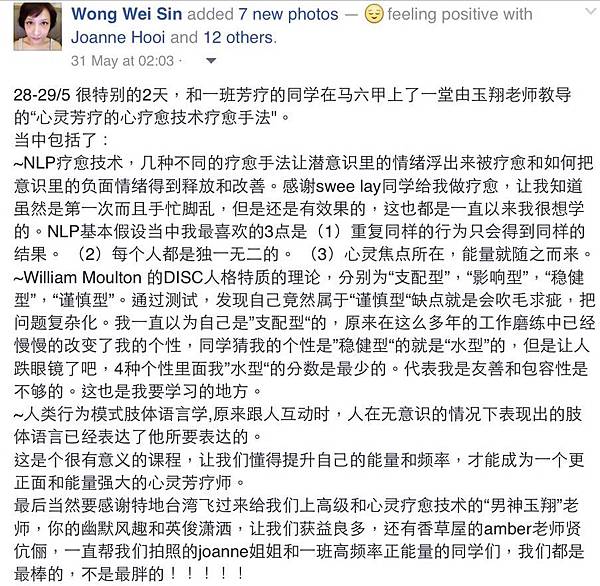 以上這是第一期2016年5月28+29日馬來西亞心靈芳療-心療癒技術活動紀錄:請點入
