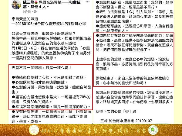 以上是第六期2017年11月18+19日台灣心靈芳療-心療癒技術活動紀錄:請點入