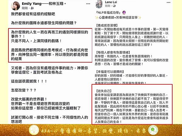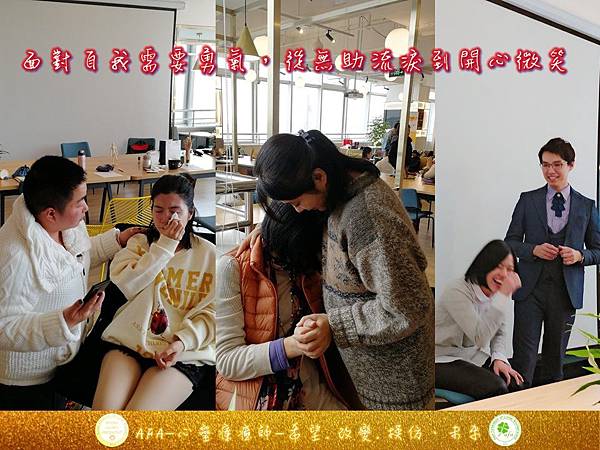 當然很多人還有會問說上完這樣的心靈療癒課是不是就變得很靈性,我想我們與外面課程很大的差異就是我們是走的是情緒快樂+情緒績效,調整好狀態後最重要的就是行動,而不是只追求精神生活~因為我們還有很多夢想需要行動實現,如果我們心靈療癒的LOGO:HOPE、CHANGE、IMITATE、FUTURE,先擁有希望、開始改變、選擇模仿、迎接全新的未來!