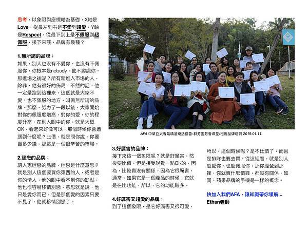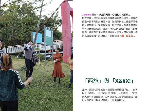 January 深圳,舒適的天氣、心情也非常愉快... 橙悅品牌,是由群芳園資深芳療師團隊所成立,團隊成員是一批專業的芳療師,但,知識與銷售二個是不同領域,熟知識不一定會懂營銷。橙悅品牌,為改善業績困境、提升營銷知識,透過,AFA二天課程的培訓,重新定義,品牌在市場的價值與方向,未來,可以預期,橙悅品牌在藍海中展現實力,創造佳績。續,分享文...