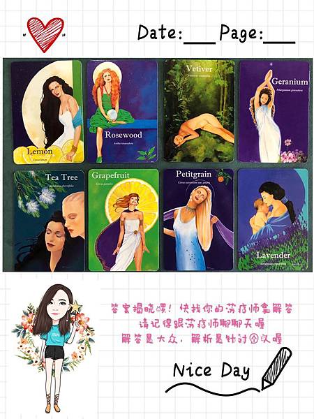 香氣情緒療癒請將抽到的香氣與自己喜愛的精油做搭配,可以隨身攜帶香氣吸嗅使用,或者製成香水也會為你增添風采喔!